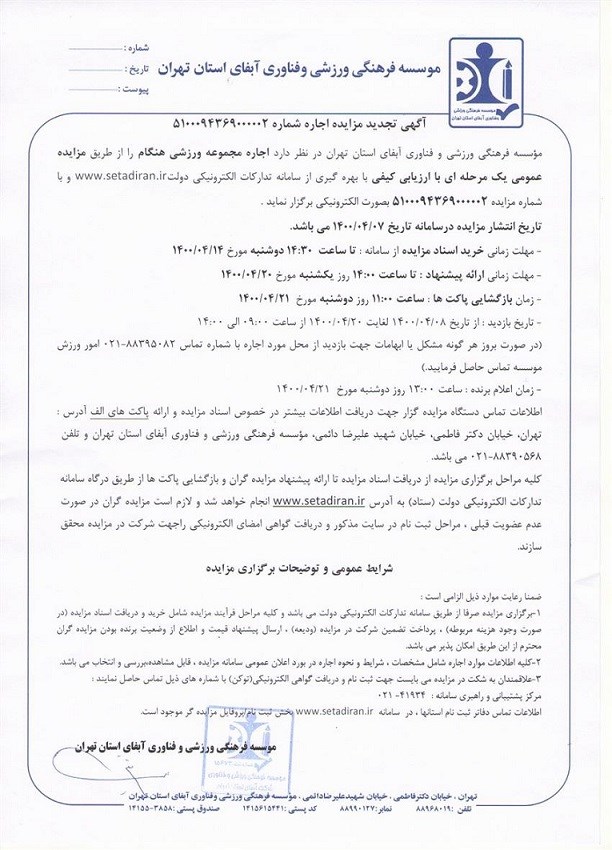 موسسه فرهنگی ورزشی و فناوری آبفای استان تهران