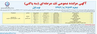 | 1 | كمربند پلی اتیلن 2/1*20 | 1415 | 6000 | 8490000 | | واریز نقدی یا ضمانتنامه بانكی | 6499/8/1392 | انبار سامیان اردبیل | 15510000 |