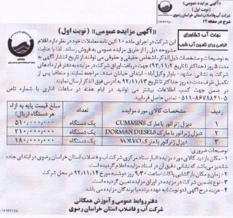 فروش حدود 827723 کیلوگرم لوله فولادی در سایزهای مختلف واقع در خط انتقال شهرستان فسا