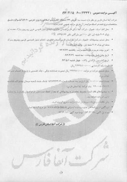 فروش حدود 827723 کیلوگرم لوله فولادی در سایزهای مختلف واقع در خط انتقال شهرستان فسا