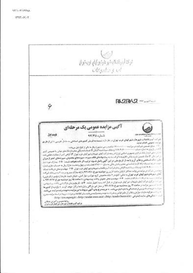فروش حدود 827723 کیلوگرم لوله فولادی در سایزهای مختلف واقع در خط انتقال شهرستان فسا