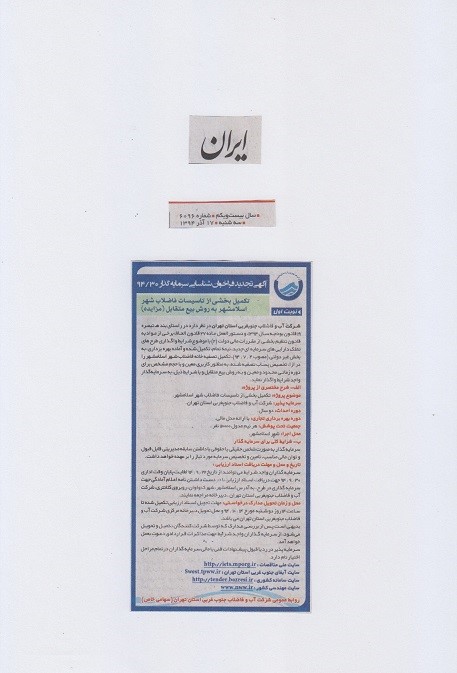 شناسایی سرمایه گذار تكمیل بخشی از تاسیسات فاضلاب شهر اسلامشهر به روش بیع متقابل