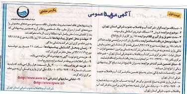 1- دستگاه مزایده گزار: شركت آب و فاضلاب جنوب شرقی استان تهران.
