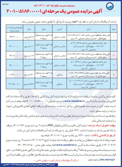 فروش 6 قطعه زمین / آبفا استان البرز