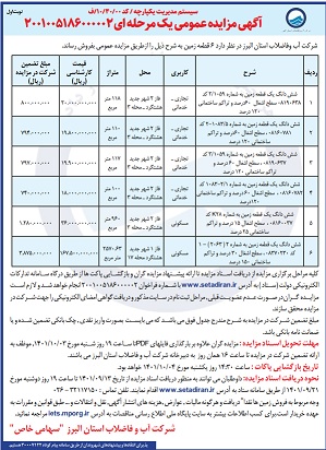 فروش 6 قطعه زمین در شهر جدید هشتگرد (تجدید) / شرکت آبفا استان البرز