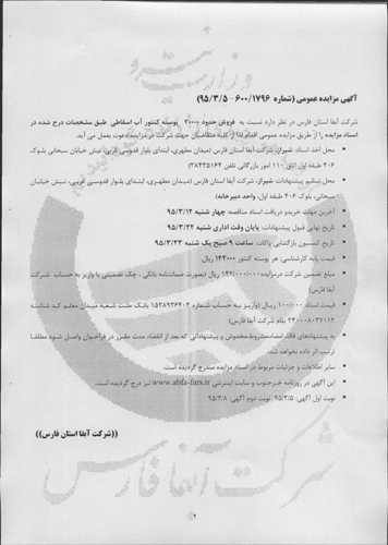 تجدید چهارم مزایده واگذاری یک باب ساختمان سابق و واحد تجاری امور آبفای ابهر به صورت قرارداد اجاره به شماره 4م-97