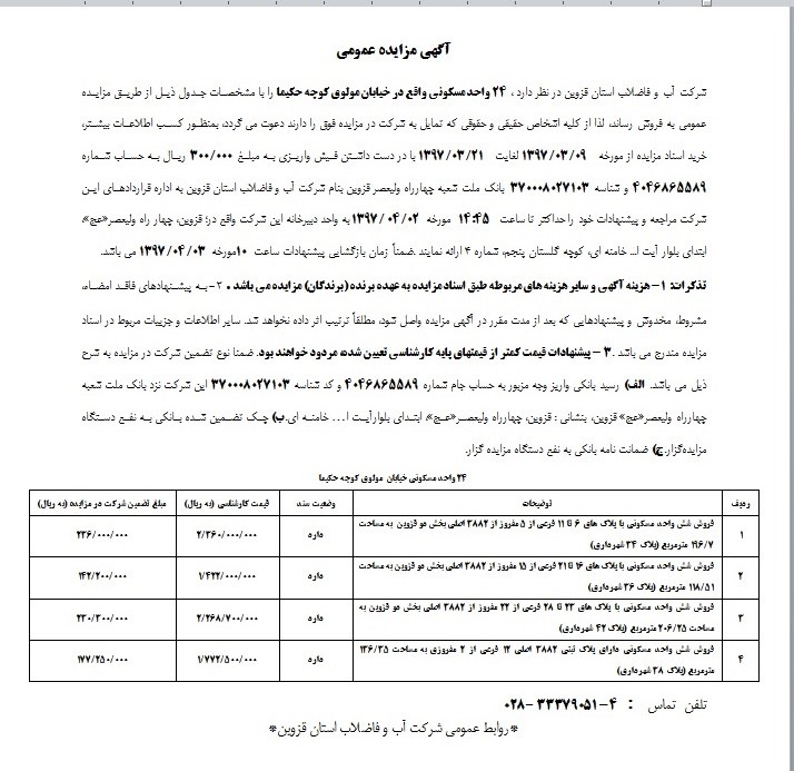 موضوع مزایده: