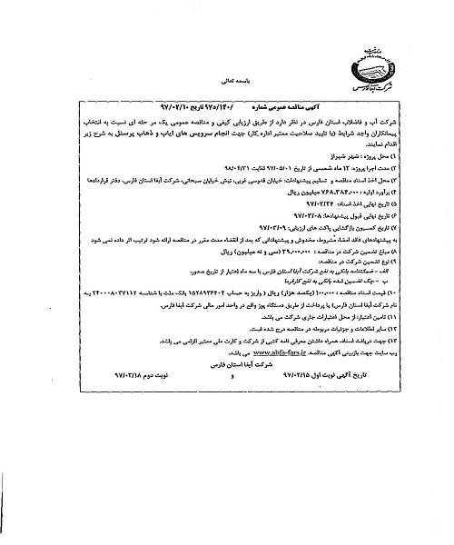 گروه مناقصات شرکت آبفای فارس