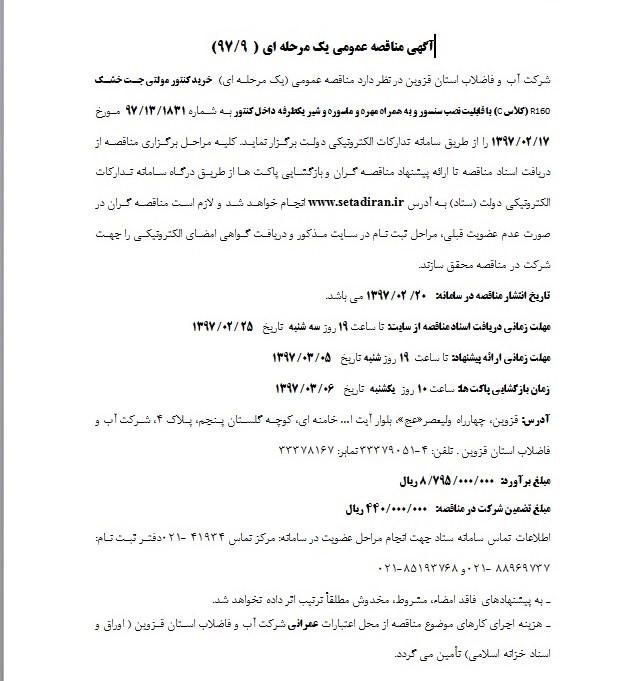 برونسپاری ارائه خدمات امداد، نگهداری و تعمیرات ، انجام خدمات پیشگیرانه شبکه های توزیع آب ، چاهها و مخازن آب و حراست فیزیکی از تاسیسات شهرستان کبودراهنگ