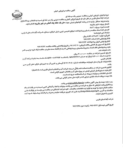 گروه مناقصات شرکت آبفای فارس