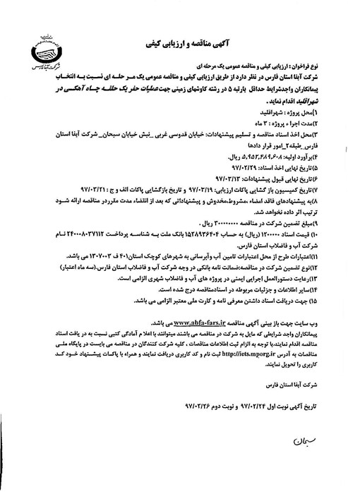 گروه مناقصات شرکت آبفای فارس