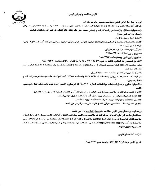 گروه مناقصات شرکت آبفای فارس