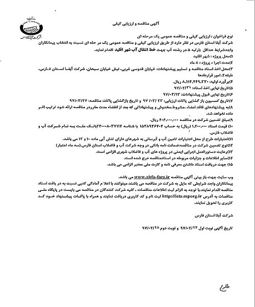 گروه مناقصات شرکت آبفای فارس