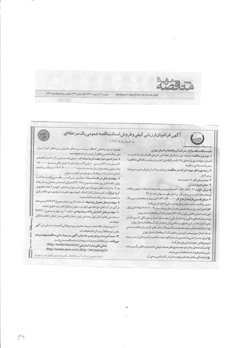برونسپاری ارائه خدمات امداد، نگهداری و تعمیرات ، انجام خدمات پیشگیرانه شبکه های توزیع آب ، چاهها و مخازن آب و حراست فیزیکی از تاسیسات شهرستان کبودراهنگ