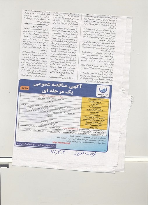 برونسپاری ارائه خدمات امداد، نگهداری و تعمیرات ، انجام خدمات پیشگیرانه شبکه های توزیع آب ، چاهها و مخازن آب و حراست فیزیکی از تاسیسات شهرستان کبودراهنگ