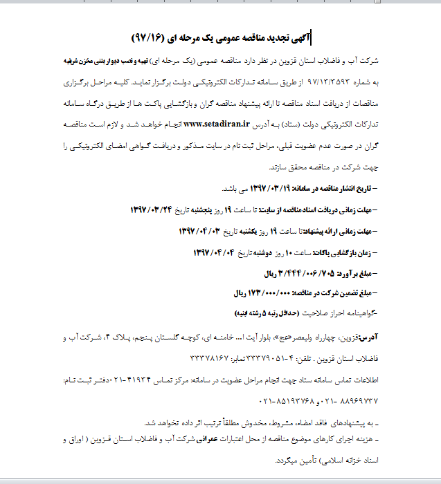 گروه مناقصات شرکت آبفای قزوین