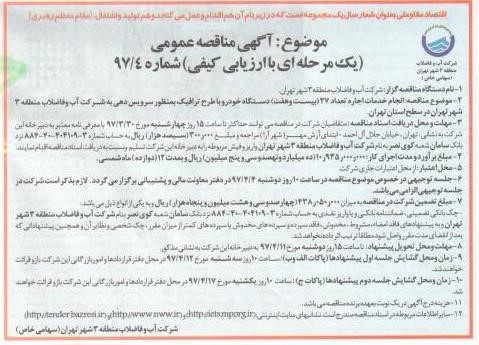 1- نام دستگاه مناقصه گزار : شرکت آب و فاضلاب منطقه3 شهر تهران.