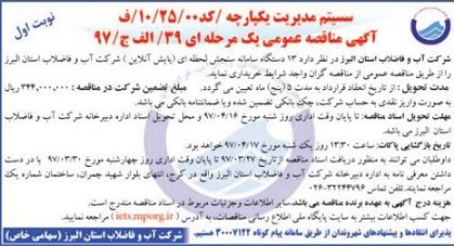 خرید 13 دستگاه سامانه سنجش لحظه ای ( پایش آنلاین ) / آبفا استان البرز