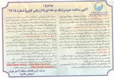 مناقصه عمومی(یک مرحله ای با ارزیابی کیفی) شماره 5/97