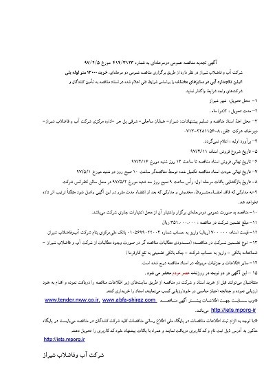 گروه مناقصات شرکت آبفای شیراز