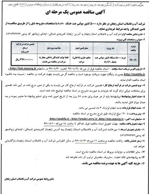 برونسپاری ارائه خدمات امداد، نگهداری و تعمیرات ، انجام خدمات پیشگیرانه شبکه های توزیع آب ، چاهها و مخازن آب و حراست فیزیکی از تاسیسات شهرستان کبودراهنگ