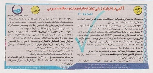 آگهی فراخوان ارزیابی توان انجام تعهدات و مناقصه عمومی(شماره 105)