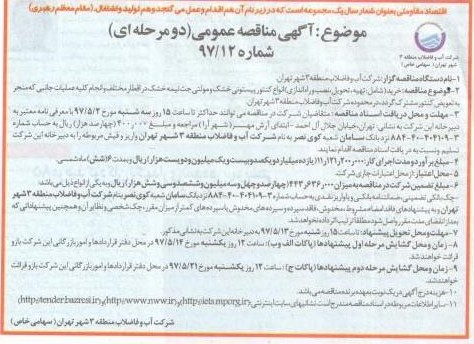 مناقصه عمومی(دو مرحله ای) شماره 12/97