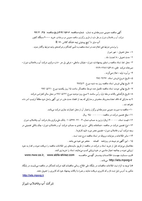 گروه مناقصات شرکت آبفای شیراز