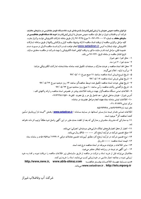 برونسپاری ارائه خدمات امداد، نگهداری و تعمیرات ، انجام خدمات پیشگیرانه شبکه های توزیع آب ، چاهها و مخازن آب و حراست فیزیکی از تاسیسات شهرستان کبودراهنگ