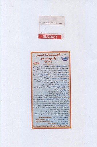 برونسپاری ارائه خدمات امداد، نگهداری و تعمیرات ، انجام خدمات پیشگیرانه شبکه های توزیع آب ، چاهها و مخازن آب و حراست فیزیکی از تاسیسات شهرستان کبودراهنگ