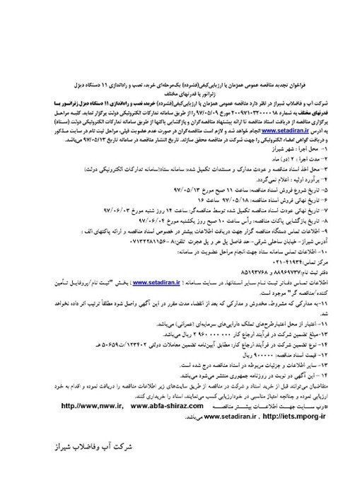 برونسپاری ارائه خدمات امداد، نگهداری و تعمیرات ، انجام خدمات پیشگیرانه شبکه های توزیع آب ، چاهها و مخازن آب و حراست فیزیکی از تاسیسات شهرستان کبودراهنگ