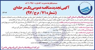 برونسپاری ارائه خدمات امداد، نگهداری و تعمیرات ، انجام خدمات پیشگیرانه شبکه های توزیع آب ، چاهها و مخازن آب و حراست فیزیکی از تاسیسات شهرستان کبودراهنگ