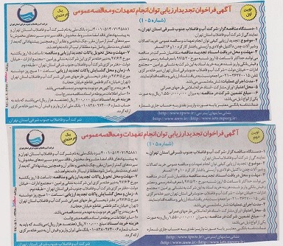 آگهی فراخوان تجدید ارزیابی توان انجام تعهدات و مناقصه عمومی(شماره 105)