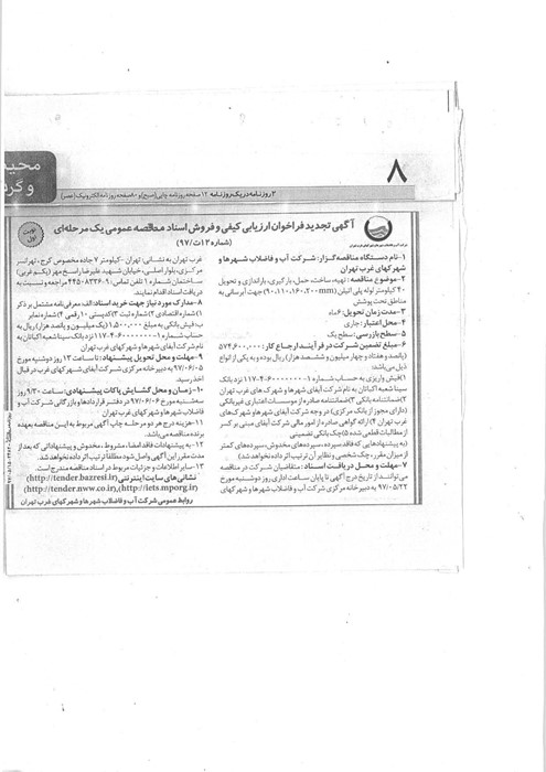 گروه مناقصات شرکت آبفای شهرها و شهرکهای غرب