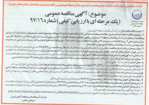 موضوع :  آگهی مناقصه عمومی(یک  مرحله ای با ارزیابی کیفی ) شماره 16/97