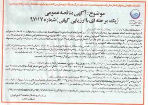 1- نام دستگاه مناقصه گزار : شرکت آب و فاضلاب منطقه3 شهر تهران.