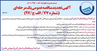 تجدید خرید 35500 متر لوله پلی اتیلن سایز 75 الی 250 میلیمتر / آبفا استان البرز