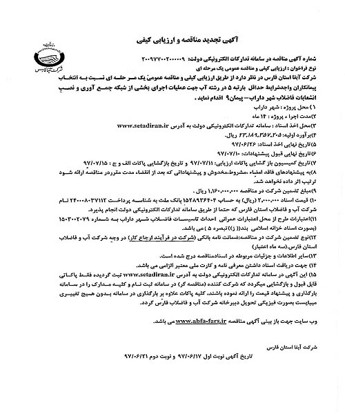گروه مناقصات شرکت آبفای فارس