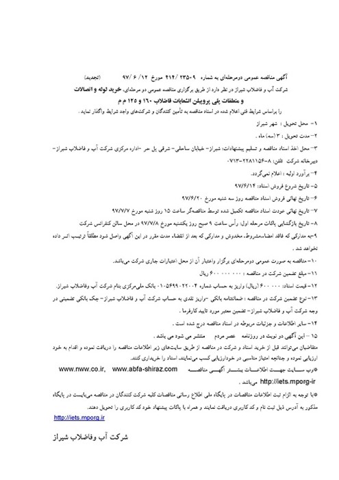 گروه مناقصات شرکت آبفای شیراز