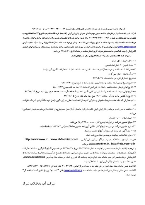 گروه مناقصات شرکت آبفای شیراز