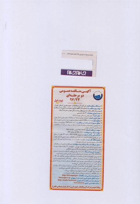 برونسپاری ارائه خدمات امداد، نگهداری و تعمیرات ، انجام خدمات پیشگیرانه شبکه های توزیع آب ، چاهها و مخازن آب و حراست فیزیکی از تاسیسات شهرستان کبودراهنگ