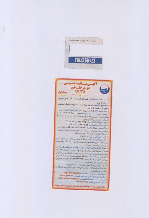 برونسپاری ارائه خدمات امداد، نگهداری و تعمیرات ، انجام خدمات پیشگیرانه شبکه های توزیع آب ، چاهها و مخازن آب و حراست فیزیکی از تاسیسات شهرستان کبودراهنگ