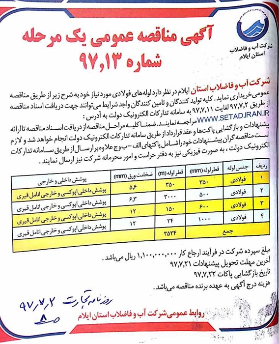 گروه مناقصات شرکت آبفای ایلام