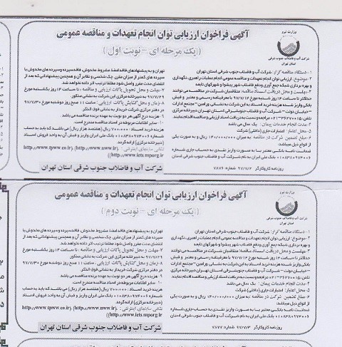 آگهی فراخوان ارزیابی توان انجام تعهدات و مناقصه عمومی(107/ب/97)