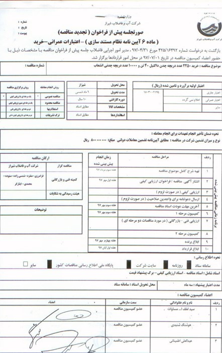 برونسپاری ارائه خدمات امداد، نگهداری و تعمیرات ، انجام خدمات پیشگیرانه شبکه های توزیع آب ، چاهها و مخازن آب و حراست فیزیکی از تاسیسات شهرستان کبودراهنگ