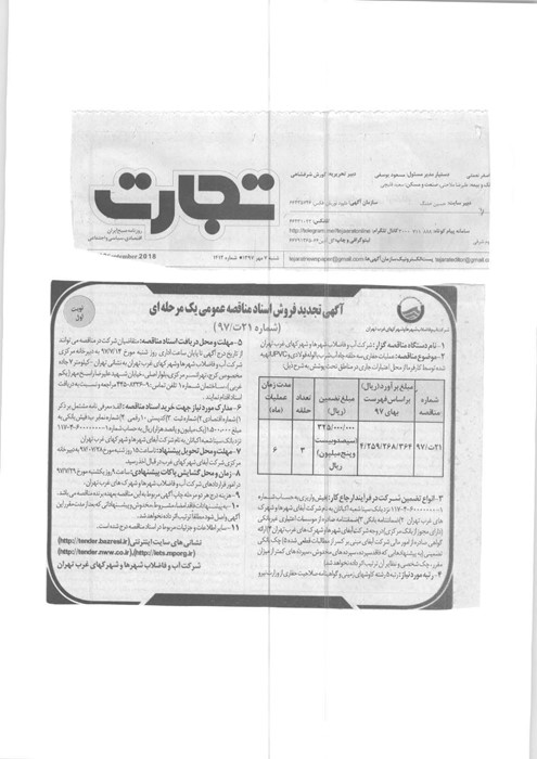 عنوان مناقصه: