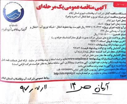 اجرای شبکه توزیع و خط انتقال آب (خرید و اجرا)شهر ایلام