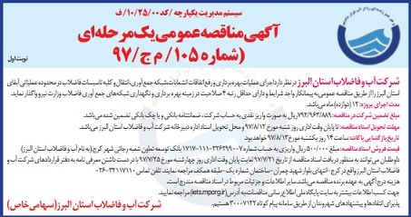 اجرای عملیات بهره برداری و رفع اتفاقات انشعابات شبکه جمع آوری , انتقال و کلیه تاسیسات فاضلاب / آبفا استان البرز