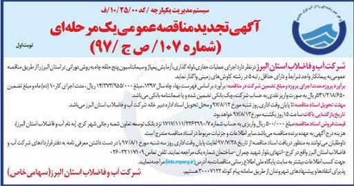 تجدید عملیات حفاری ,لوله گذاری,آزمایش پمپاژوسیمانتاسیون 5حلقه چاه / آبفااستان البرز