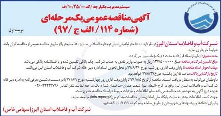 خرید 5000 متر لوله پلی اتیلن دوجداره فاضلابی سایز 250 میلیمتر / آبفا استان البرز